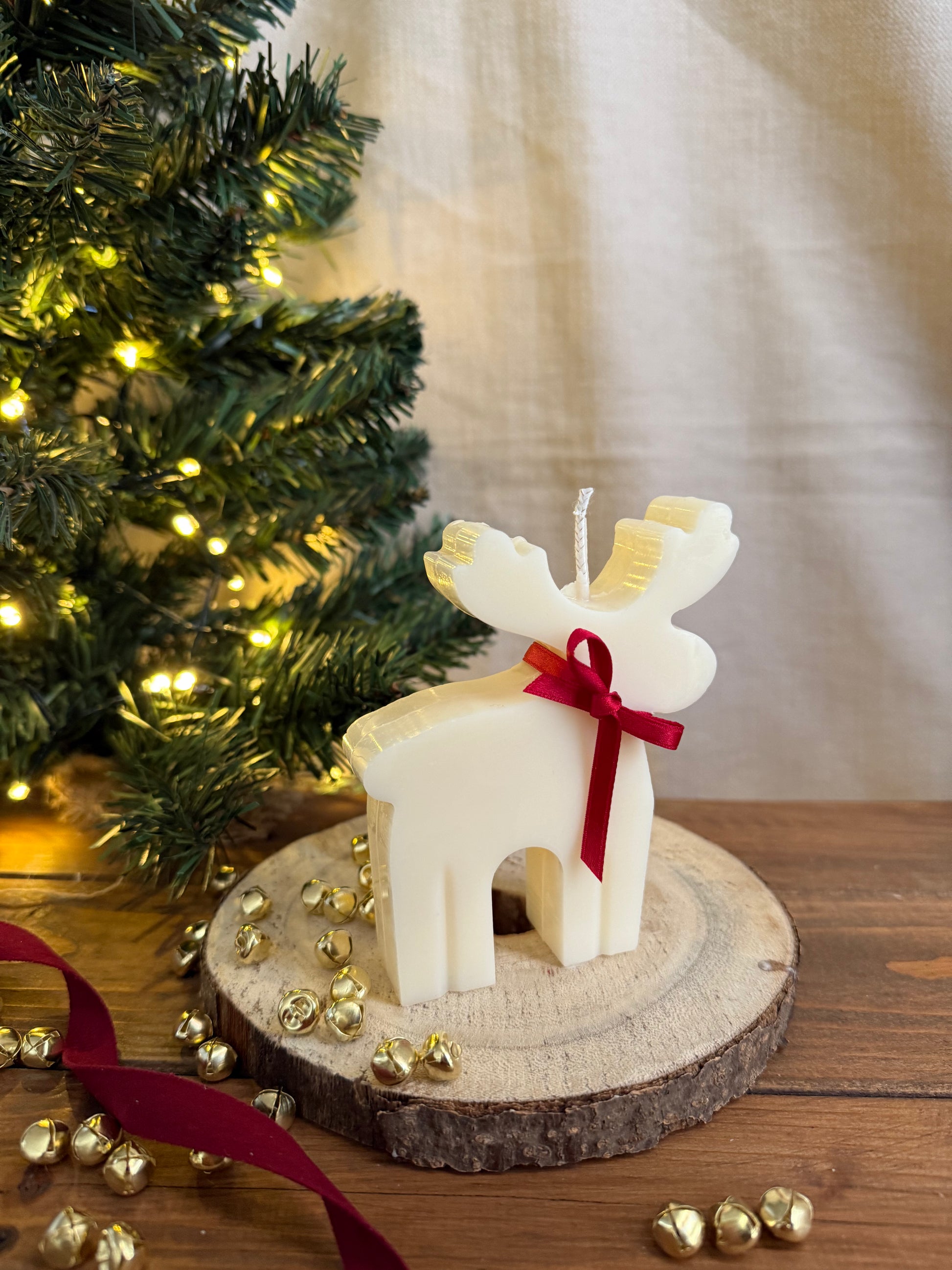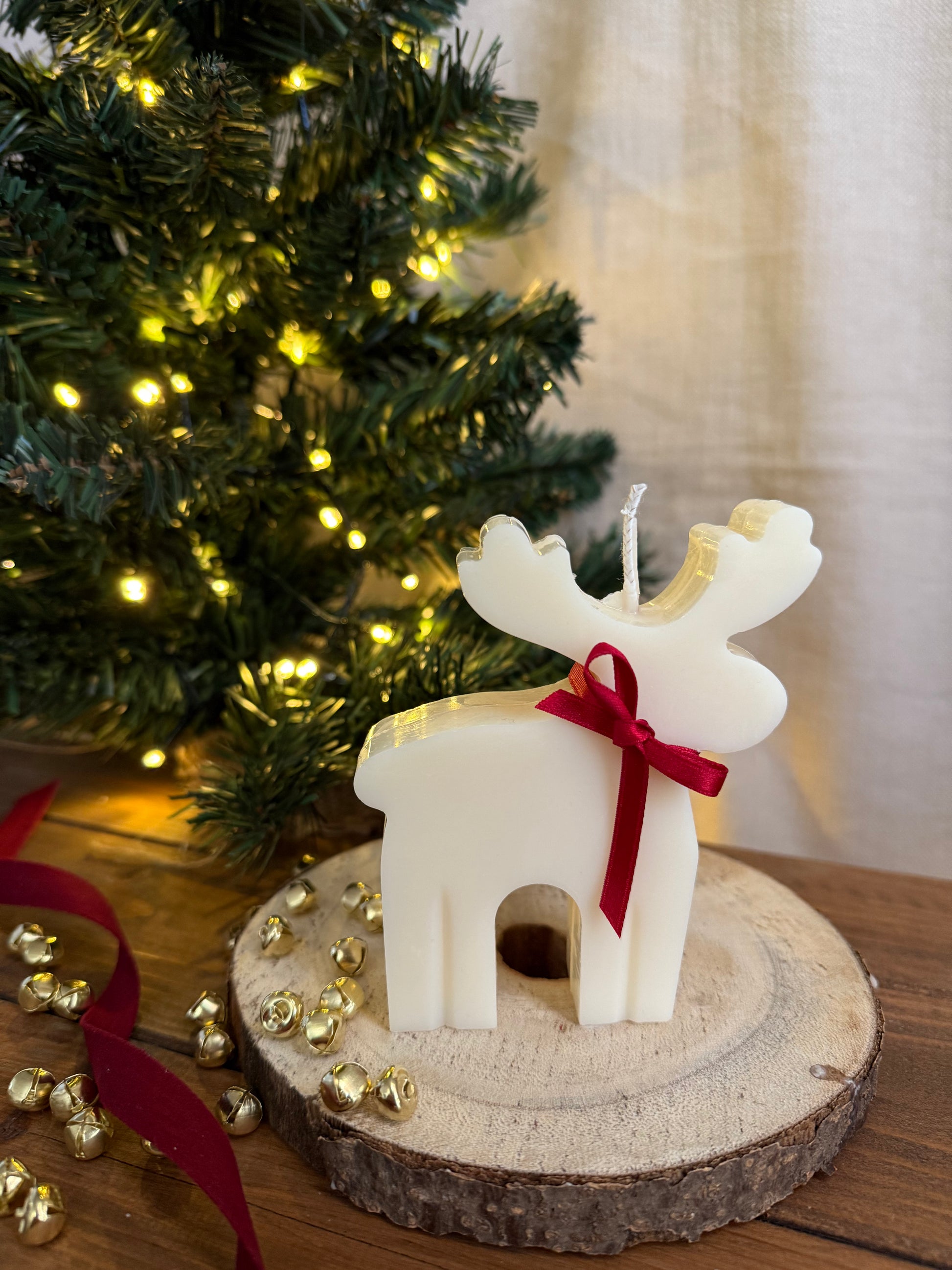 Candela estetica natalizia, in cera vegetale, colata a mano.