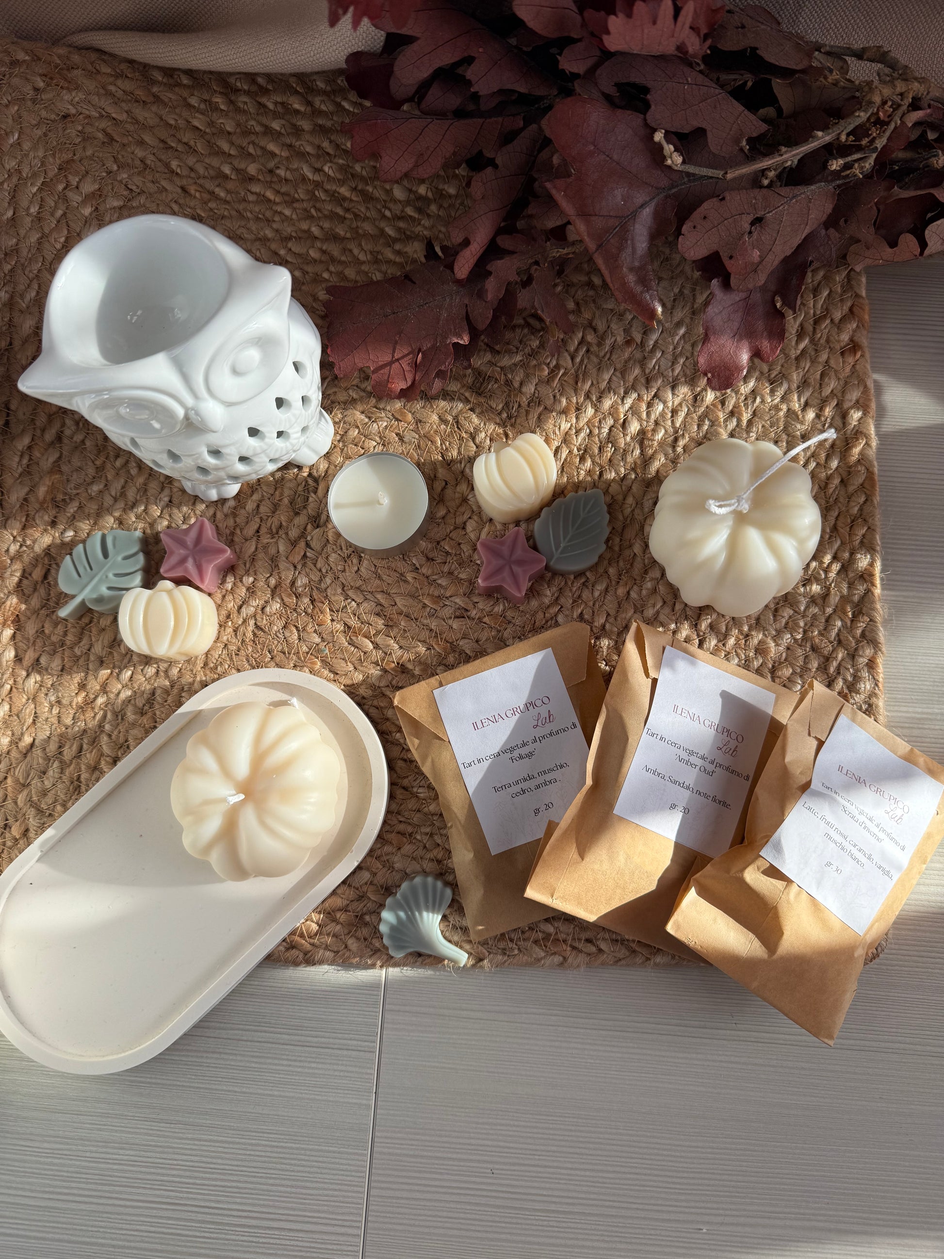 1 Candela a forma di zucchetta al profumo di Zucca speziata con note di Zucca, Cannella, Noce moscata, Caramello, Bergamotto.