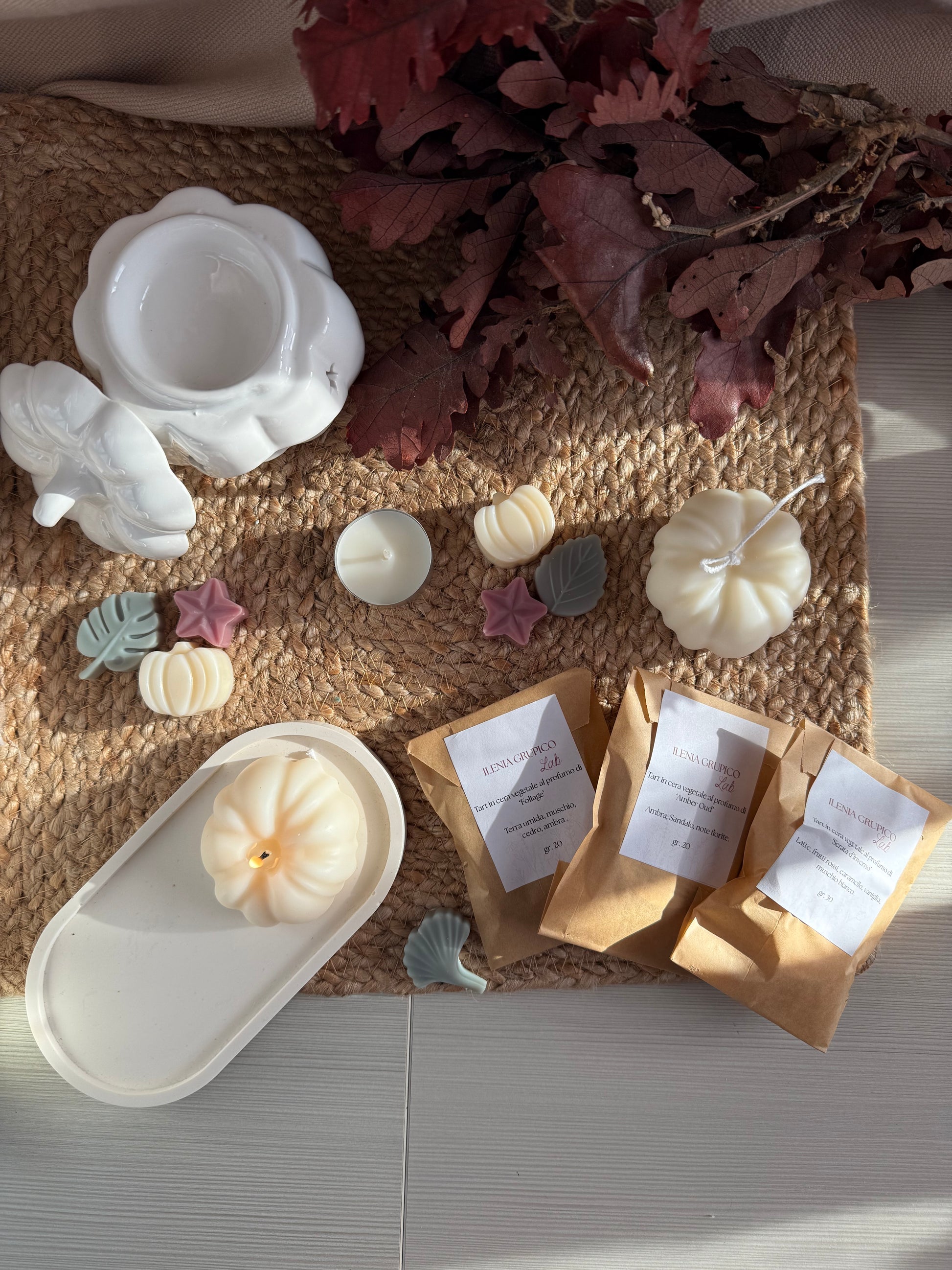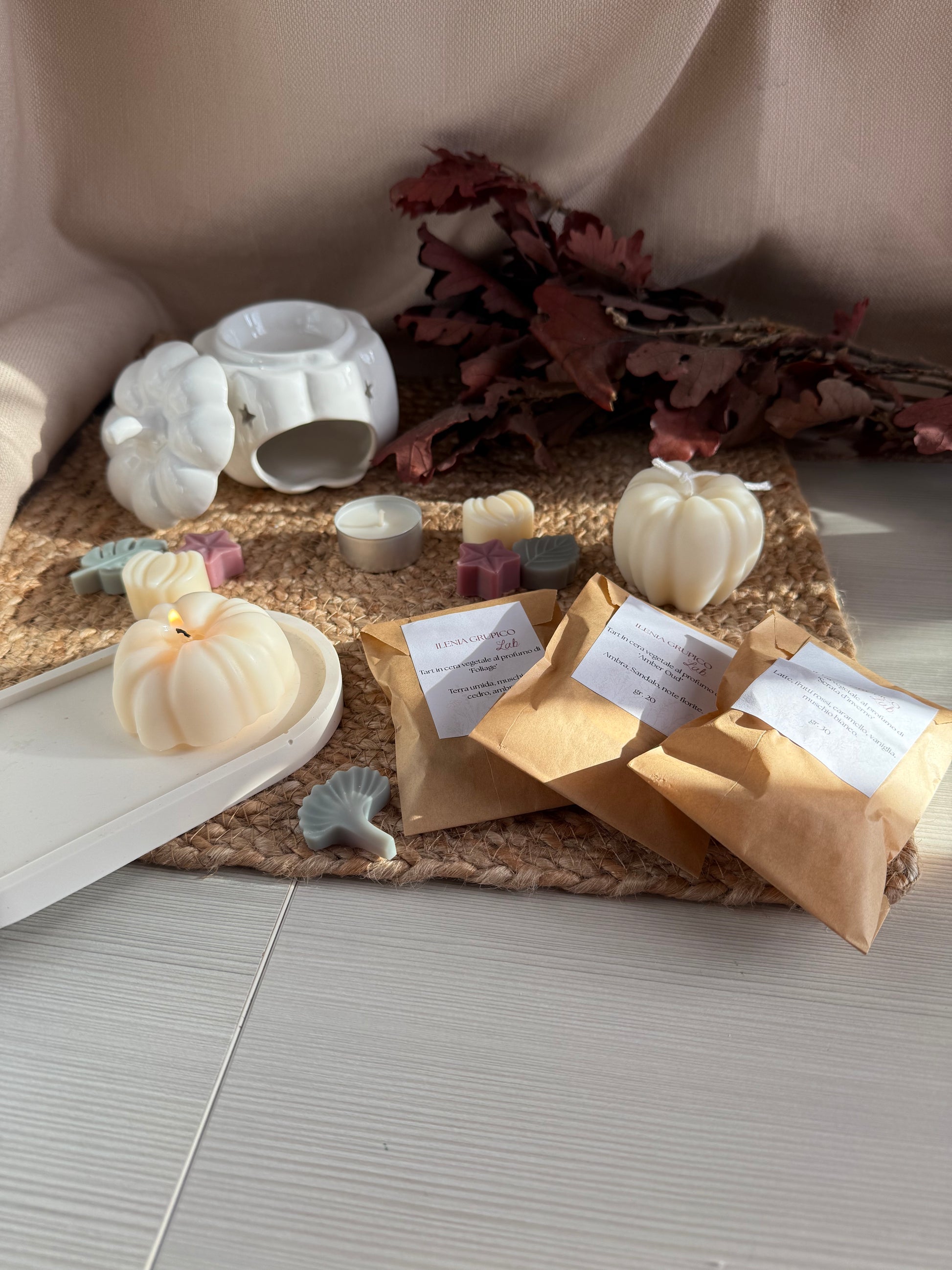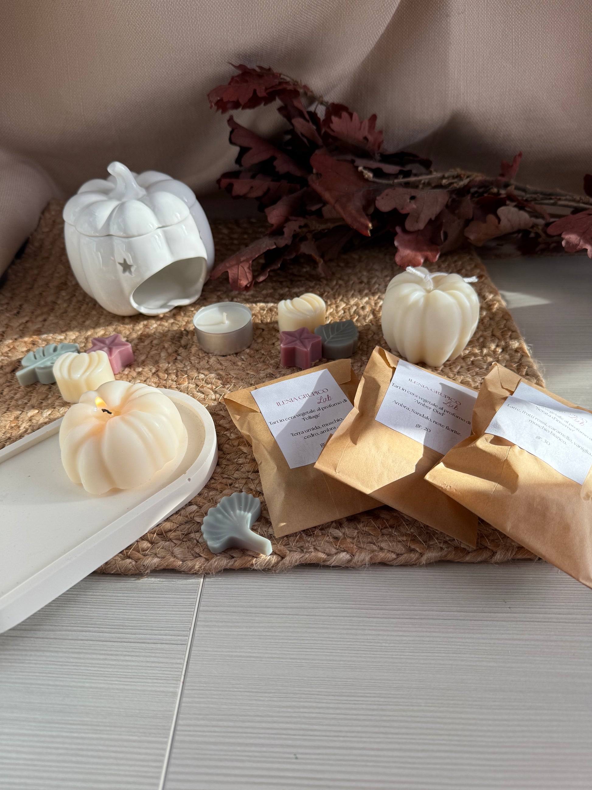 1 Candela a forma di zucchetta al profumo di Zucca speziata con note di Zucca, Cannella, Noce moscata, Caramello, Bergamotto.