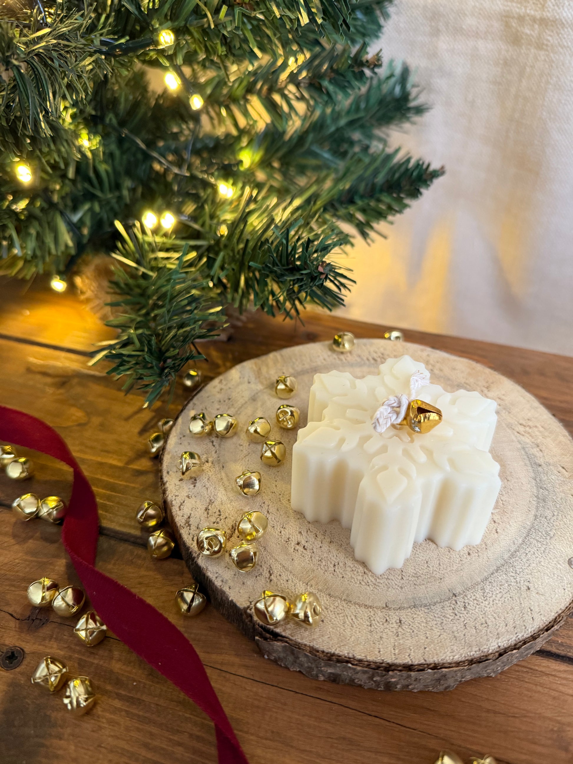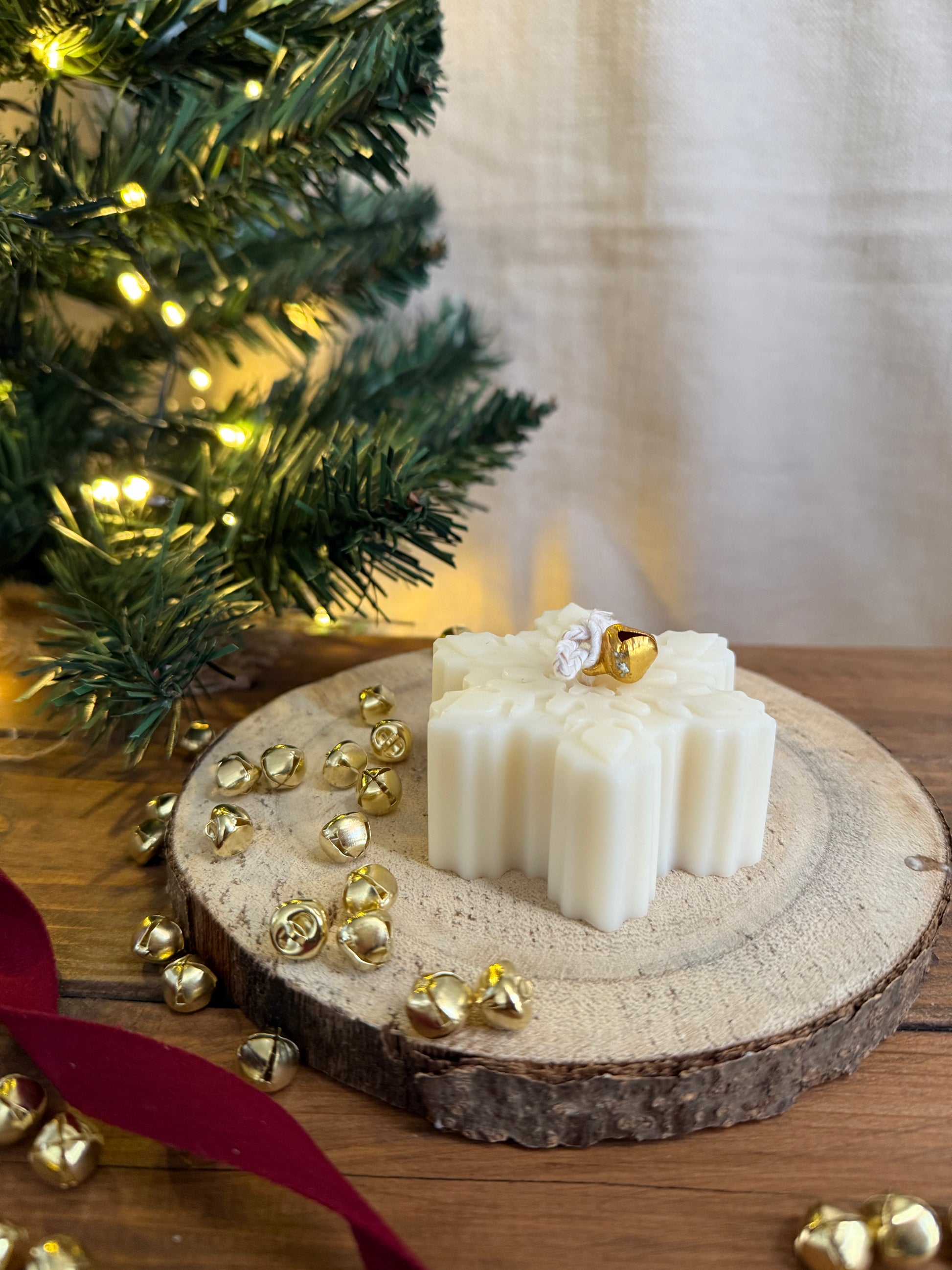 Candela estetica natalizia, in cera vegetale, colata a mano.
