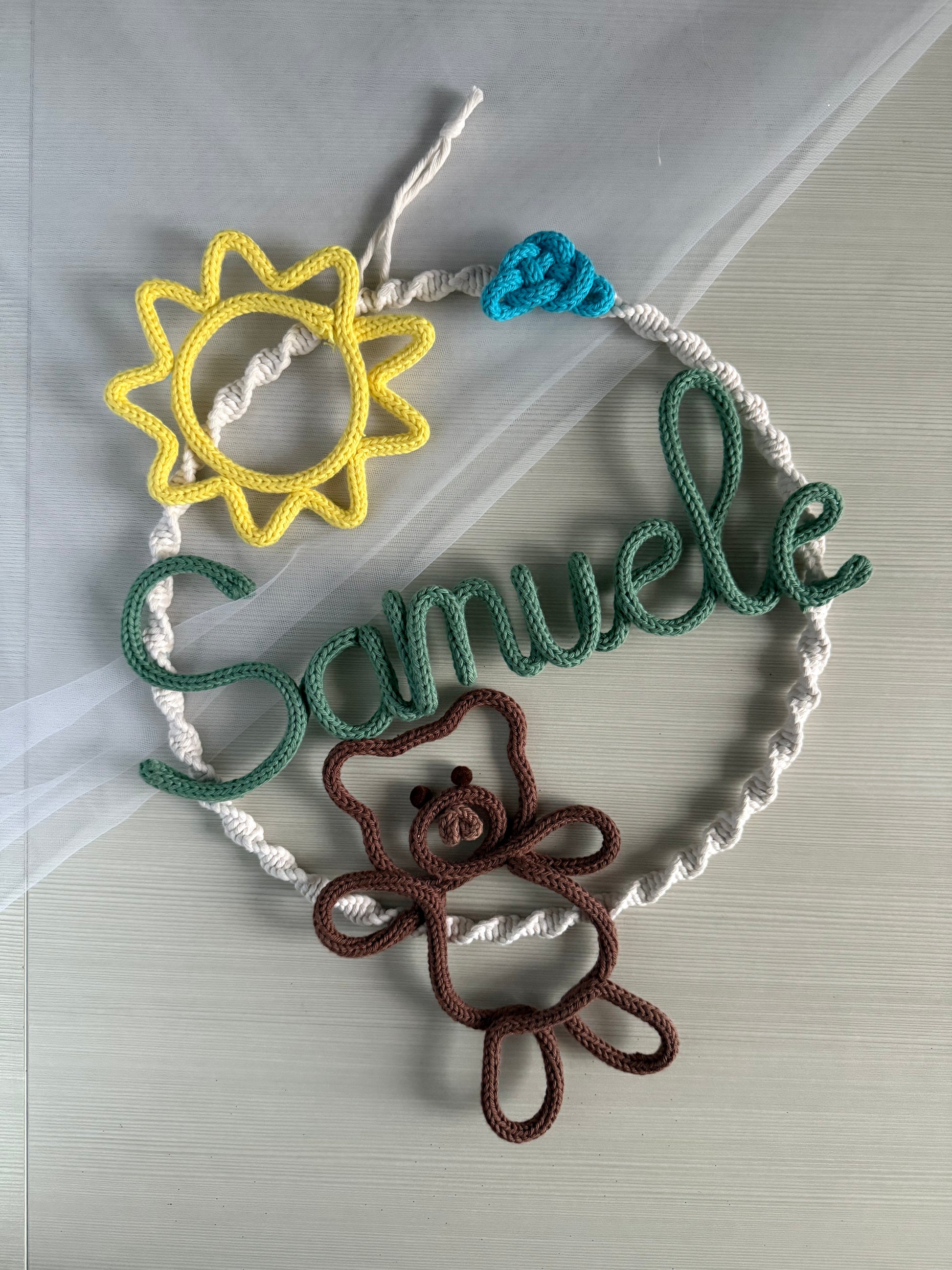 Fiocco / Ghirlanda nascita 'Sole ed orsetto'