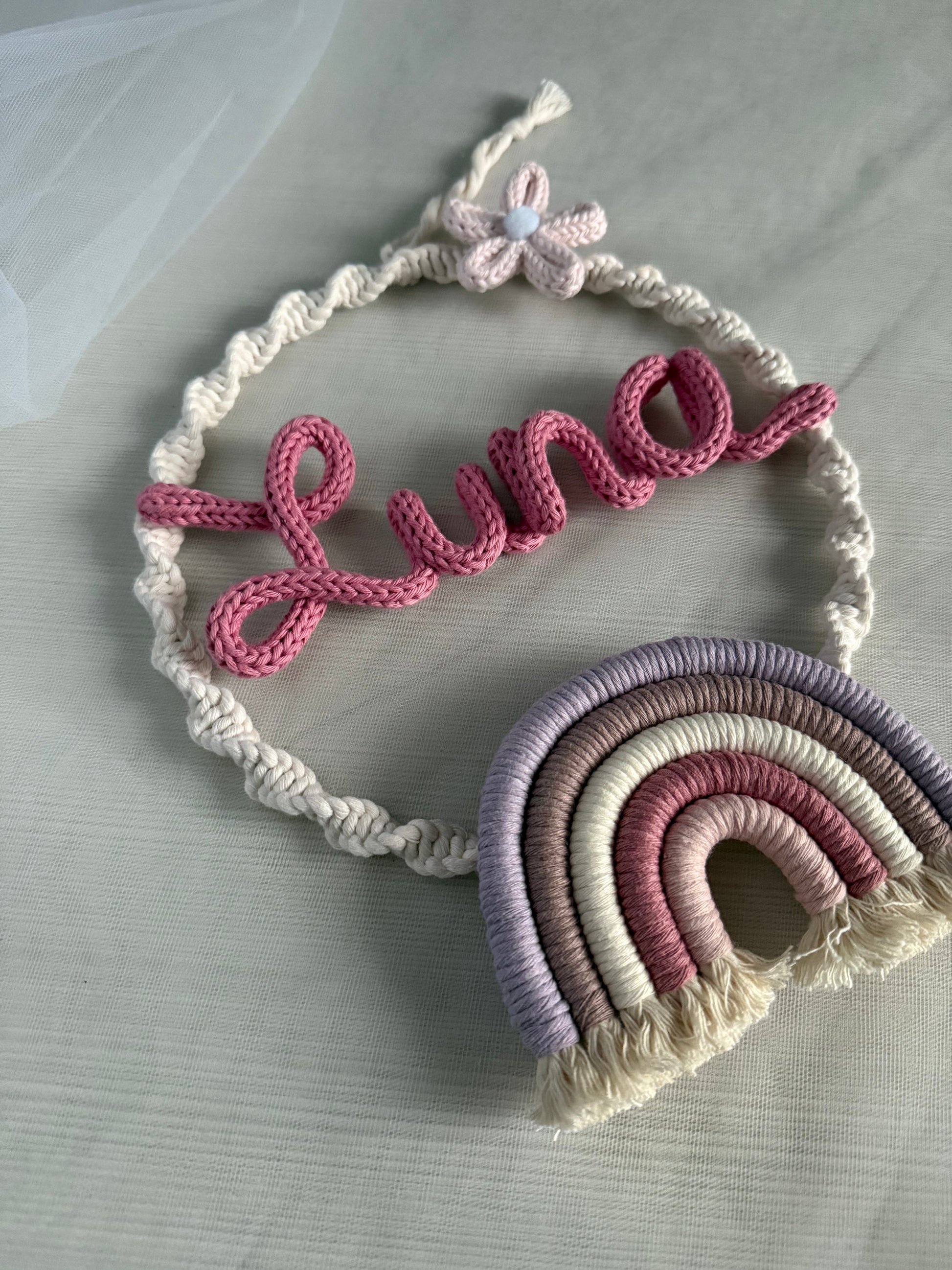 È tutto annodato, realizzato, modellato e fissato a mano, utilizzando corde e fili in cotone.