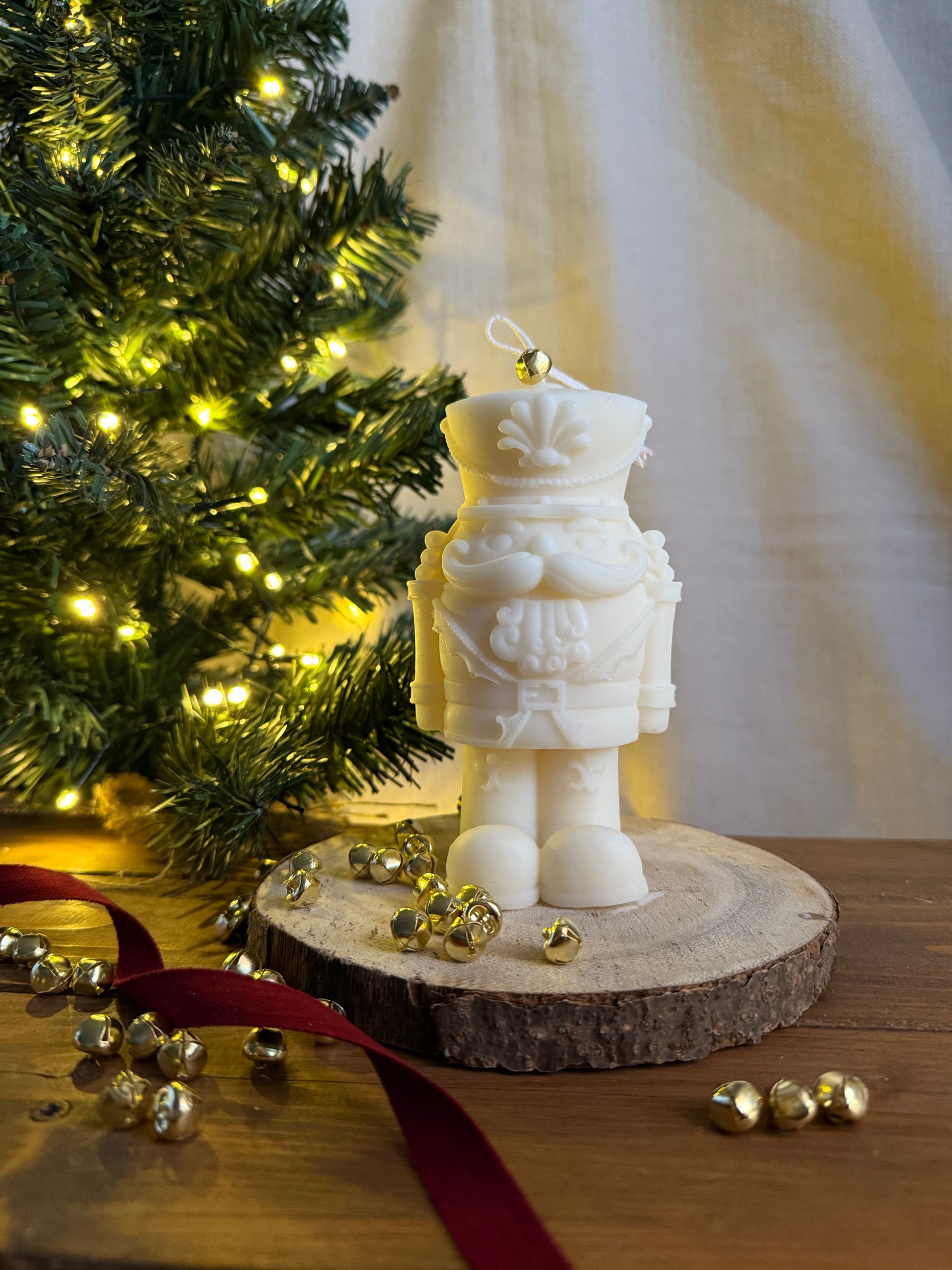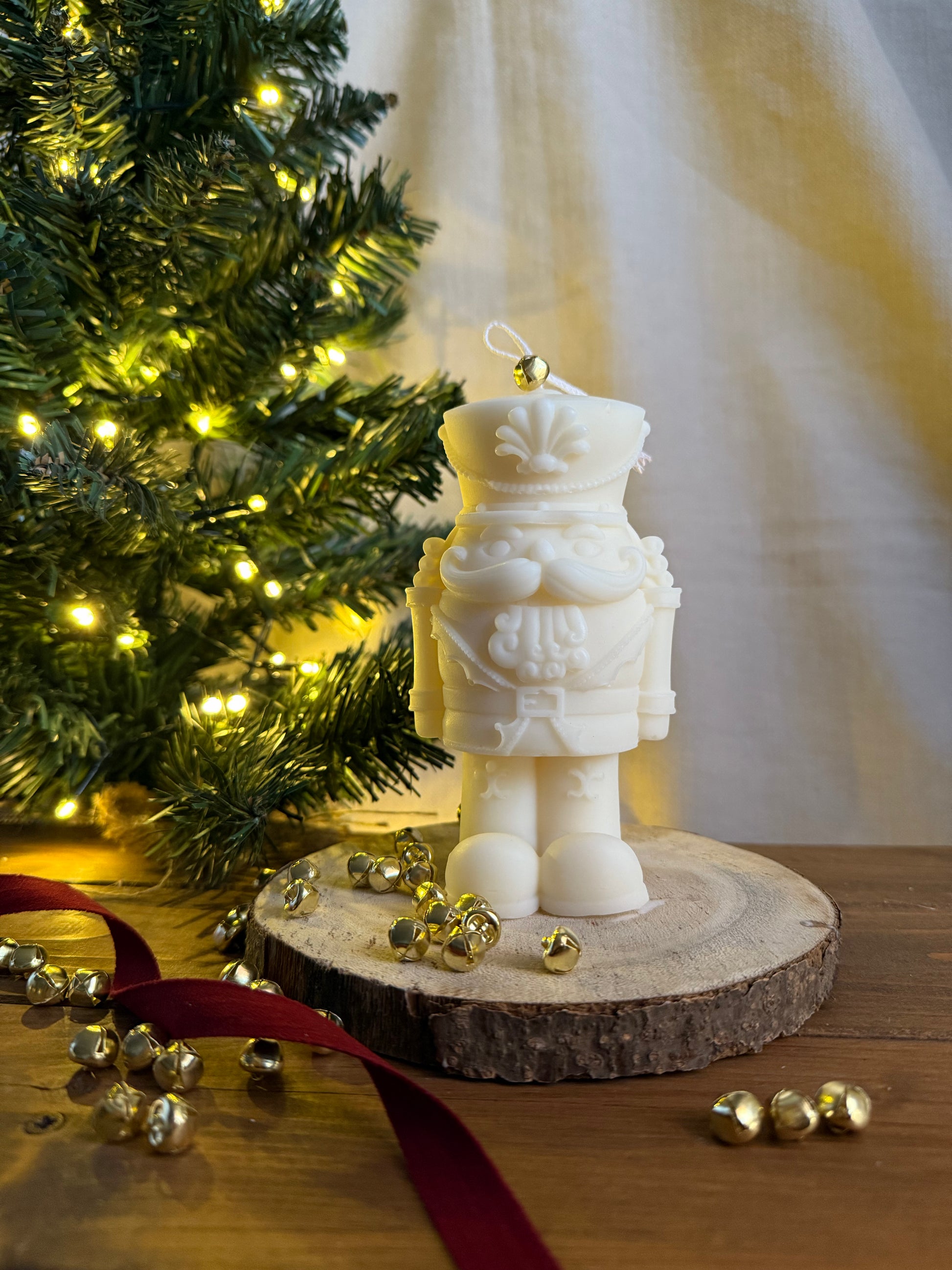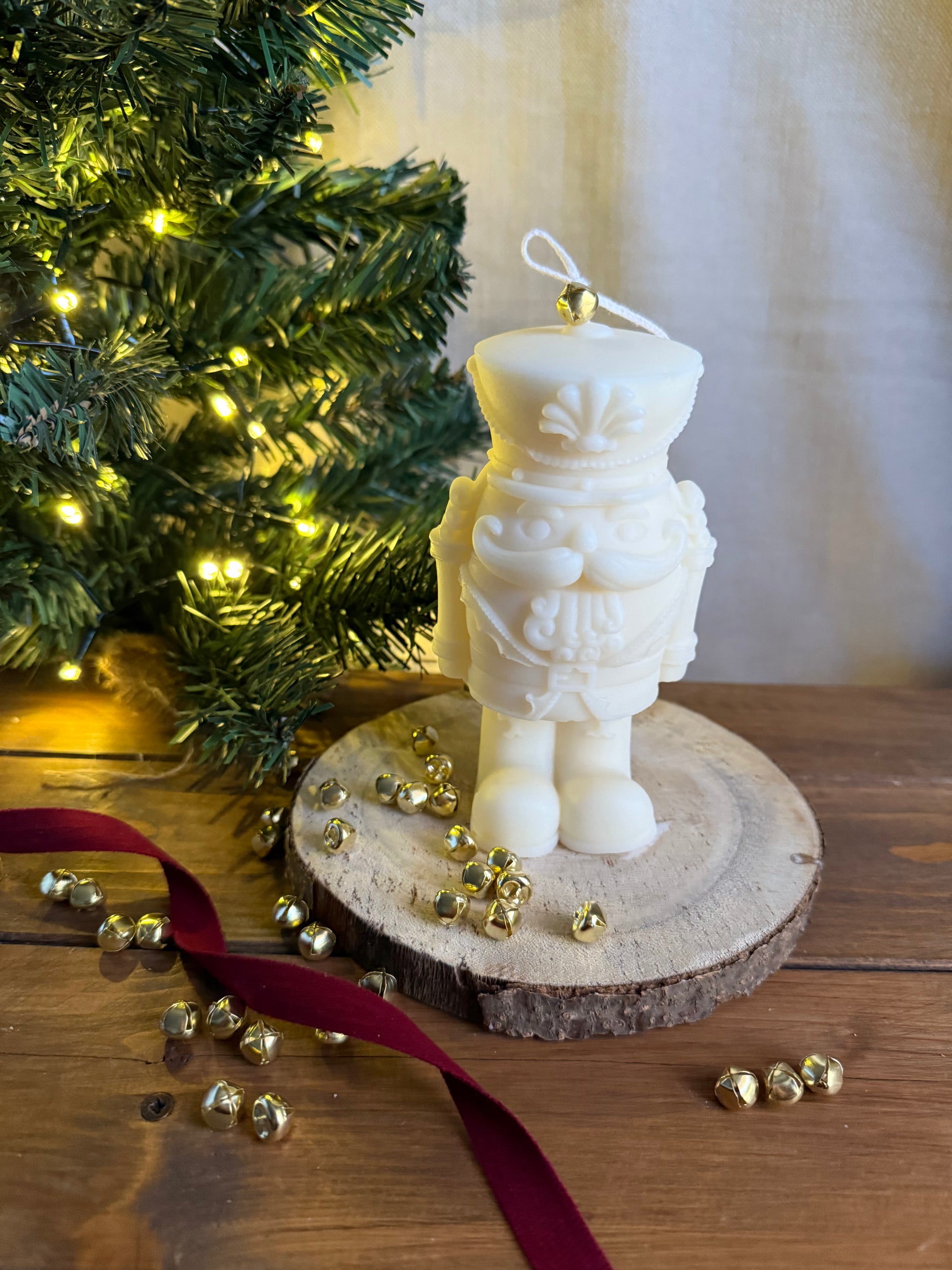 Candela estetica natalizia, in cera vegetale, colata a mano.