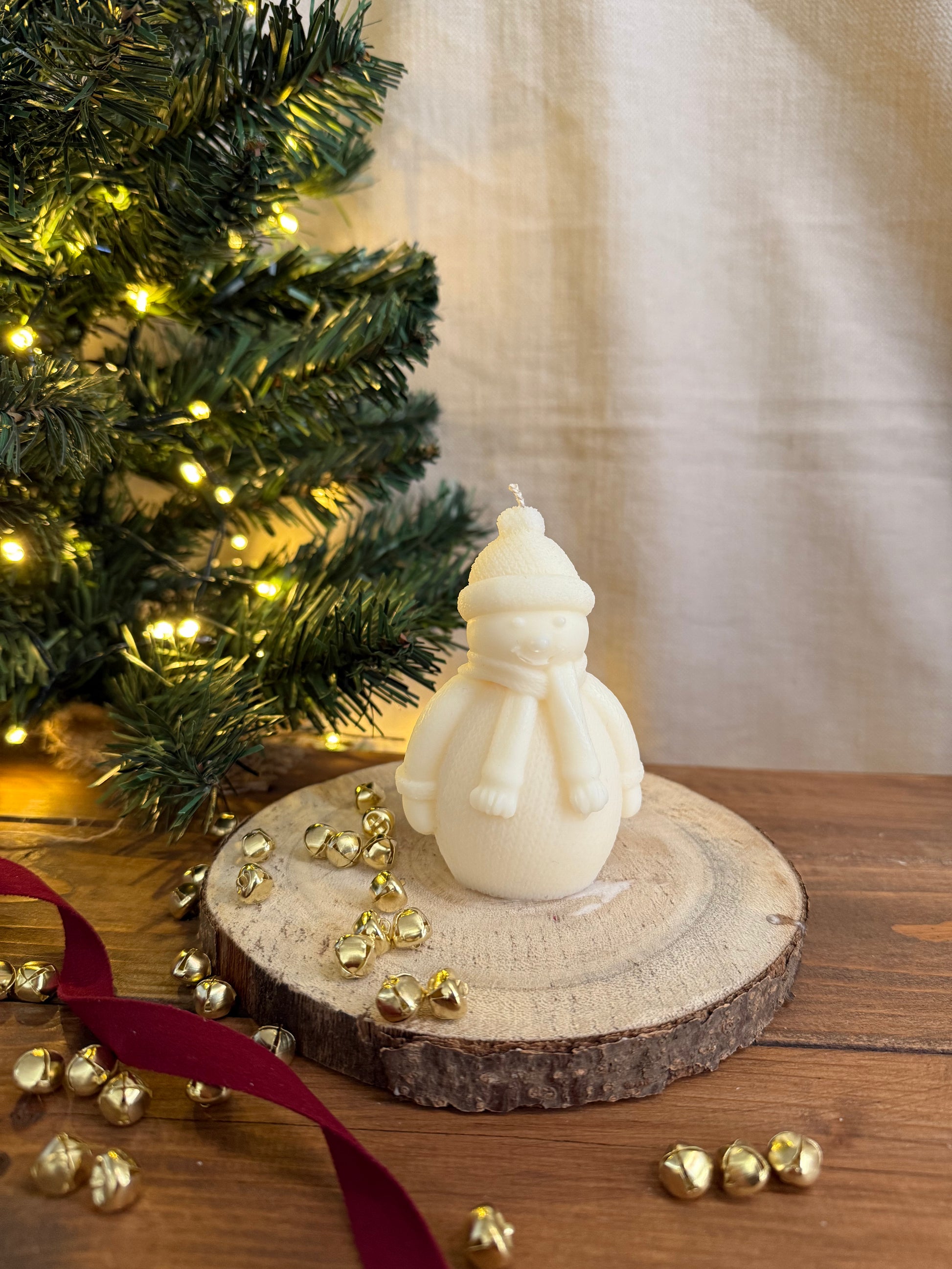 Candela estetica natalizia, in cera vegetale, colata a mano.